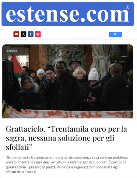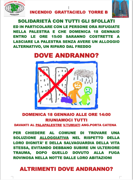 11 gennaio 2026: incendio torre B grattacielo, Ferrara 31 Gennaio 2026 Da anni sentiamo dire dall'Amministrazione che ci governa di grandi progetti per riqualificare tutto il quartiere, grandi parole vuote. Grandi progetti e pochi controlli delle abitazioni, degli affit…