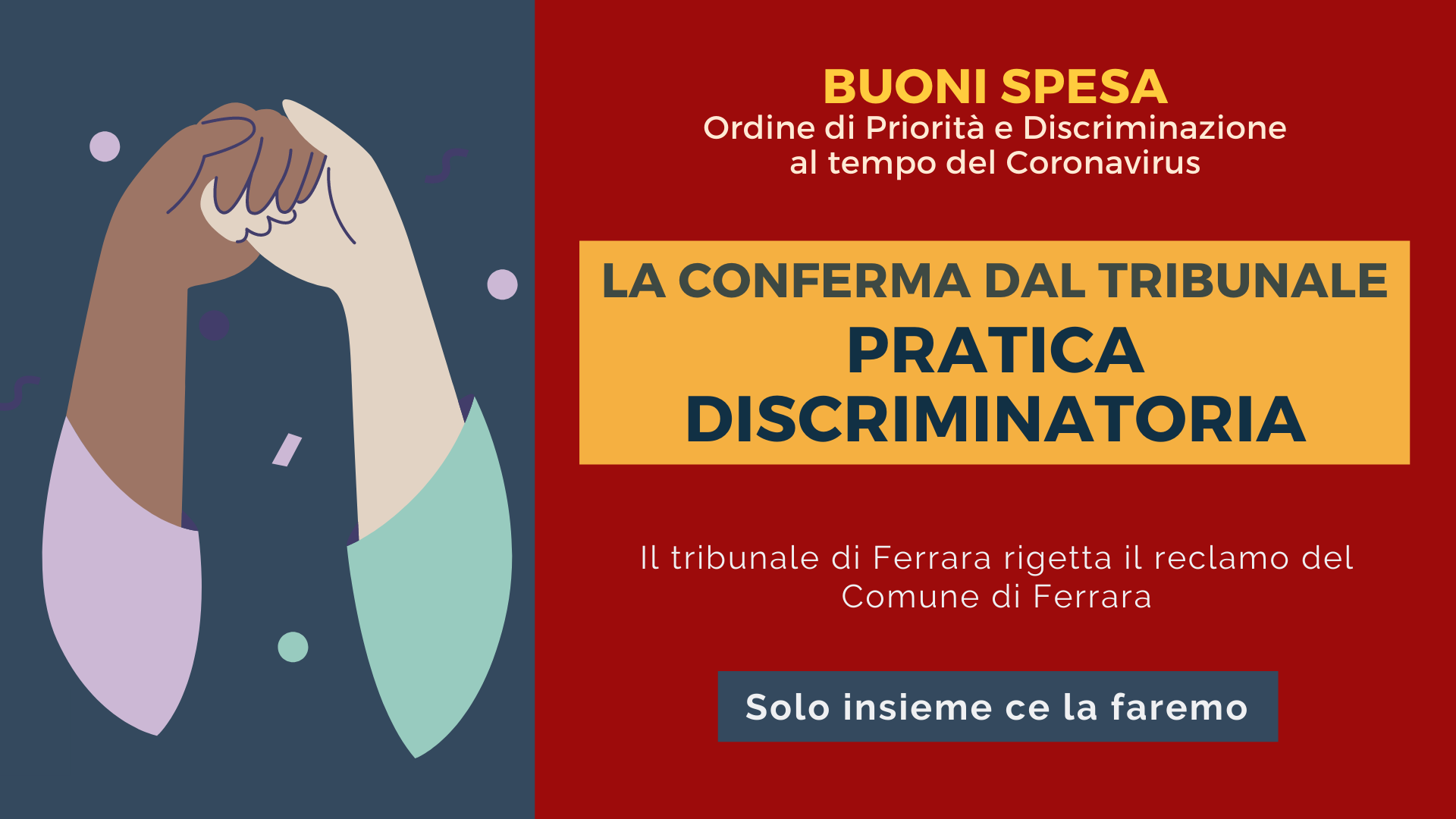 Arriva la conferma dal Tribunale di Ferrara: Pratica Disciminatoria da parte del Comune di Ferrara.