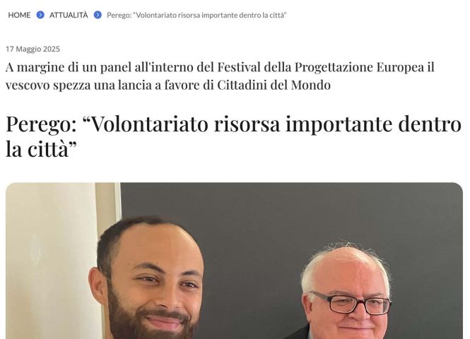 Perego: volontariato risorsa importante dentro la città 18 Maggio 2025 A margine di un panel all'interno del Festival della Progettazione Europea il vescovo spezza una lancia a favore di Cittadini del Mondo Leggi tutto